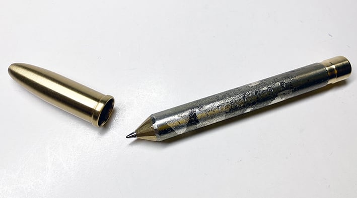 えんぴつ型 Z仕様 + 鉛筆用キャップ付き + Stumpy サイズ + カッター削り + 銀箔箔押し
